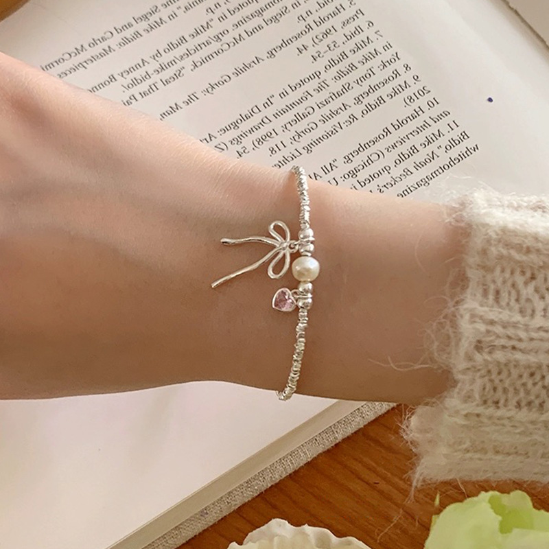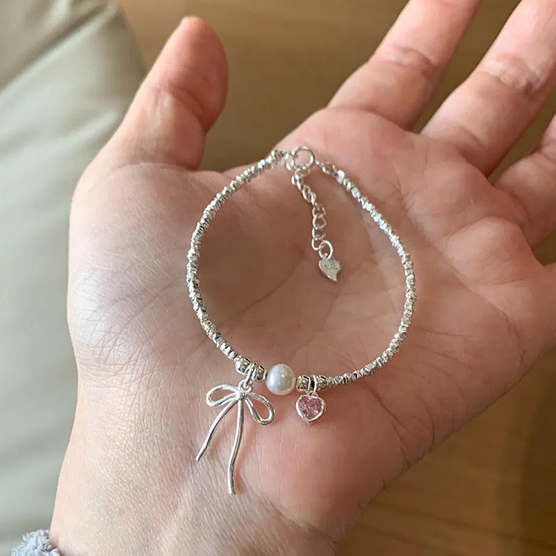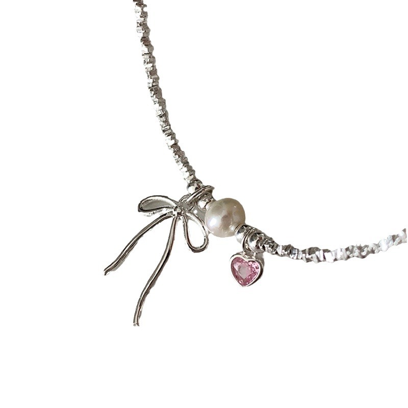 ピンクのハート型チャームがアクセントになり、女性らしい繊細なデザインが魅力的です。