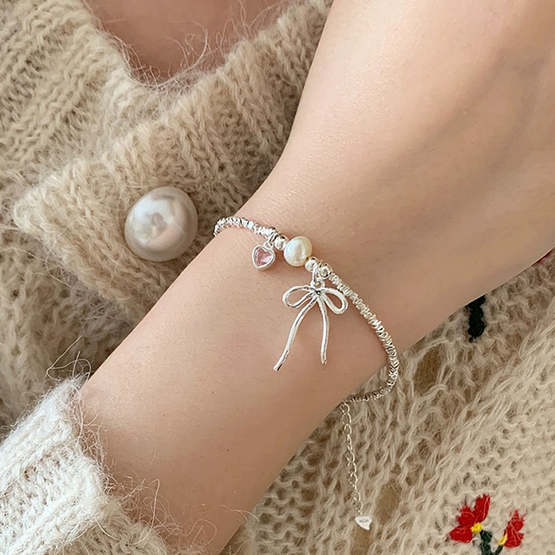 可愛らしいリボンチャームと上質なパールが華やかさを演出します。