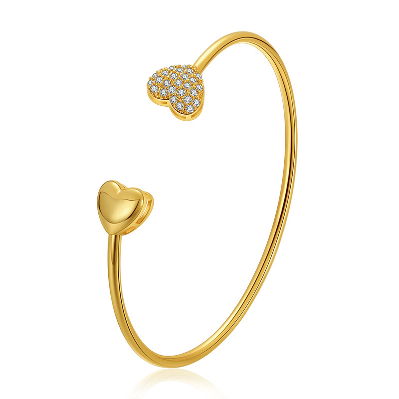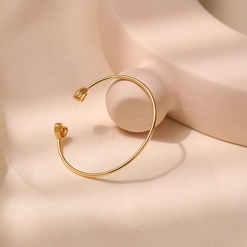 上品なK18ゴールドを使用したハートモチーフの開口式ブレスレット。