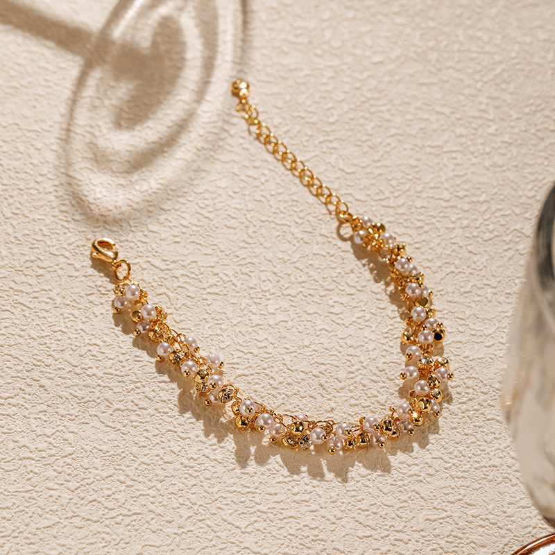繊細なゴールドチェーンに淡水パールを贅沢にあしらった、
