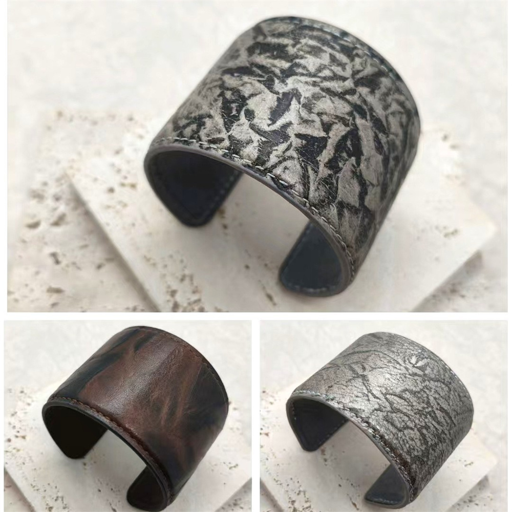 大人かわいい雰囲気に仕上げた本革製のバングルです。 編み込み風のデザインが個性的で、毎日使えるブレスレットレディースアイテム。 上品な仕上がりでちょっとしたプレゼントにも最適です。