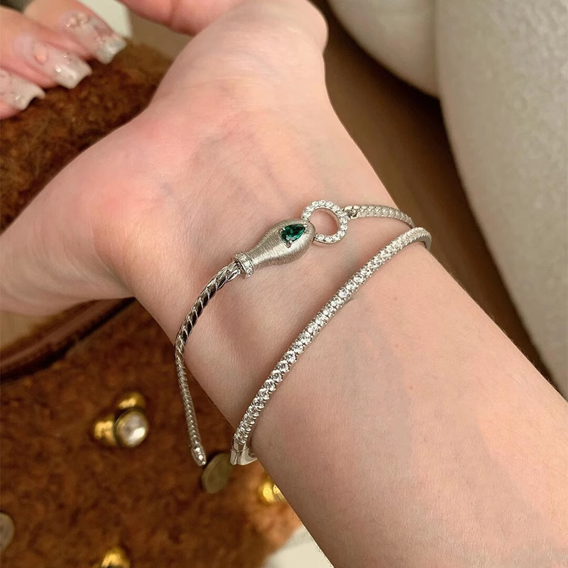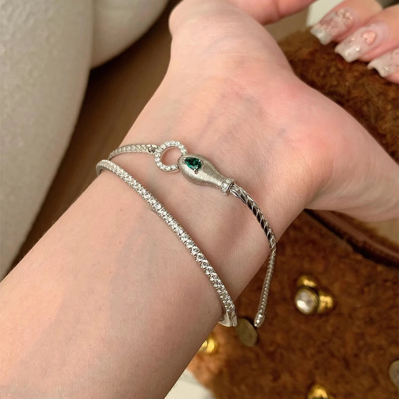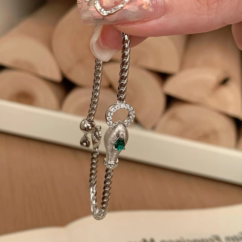 蛇モチーフと緑の石が個性的で高級感溢れるデザインです。