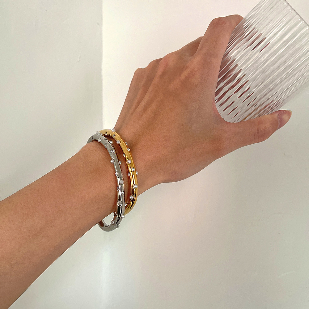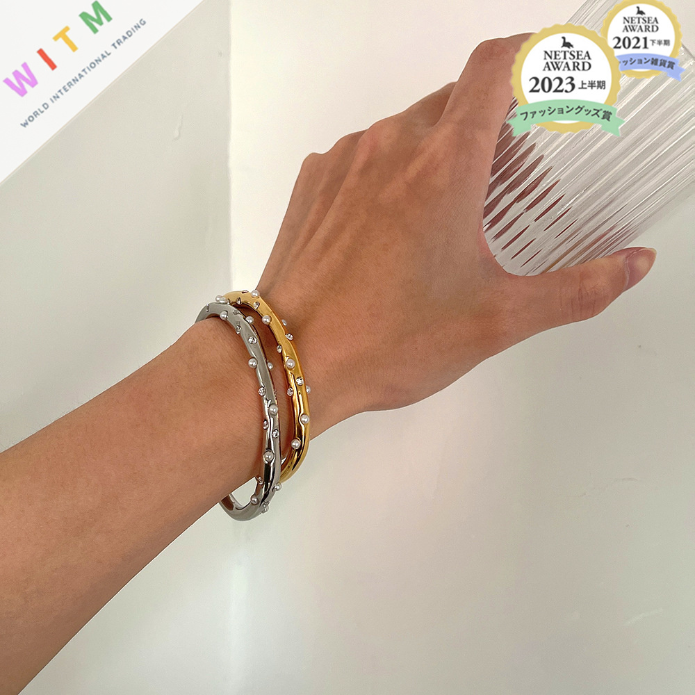 快適な装着感で、汗をかいてもかゆくならない安心素材のパール付き高級腕飾りです。