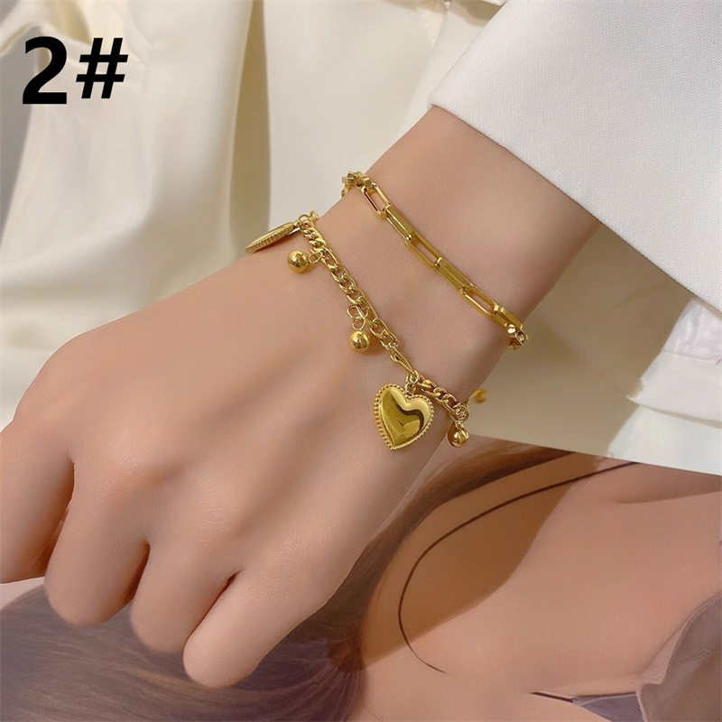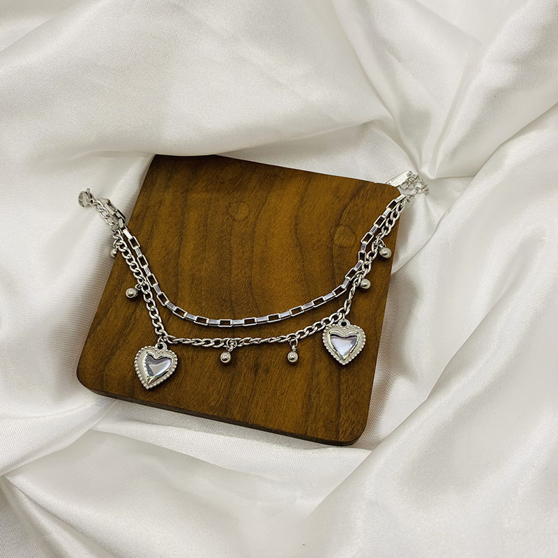大人可愛い雰囲気に仕上げたゴールドブレスレットレディース用です。 二重チェーンとハートチャームが上品な印象を演出します。 デイリーコーディネートからプレゼントまで幅広くお使いいただけます。