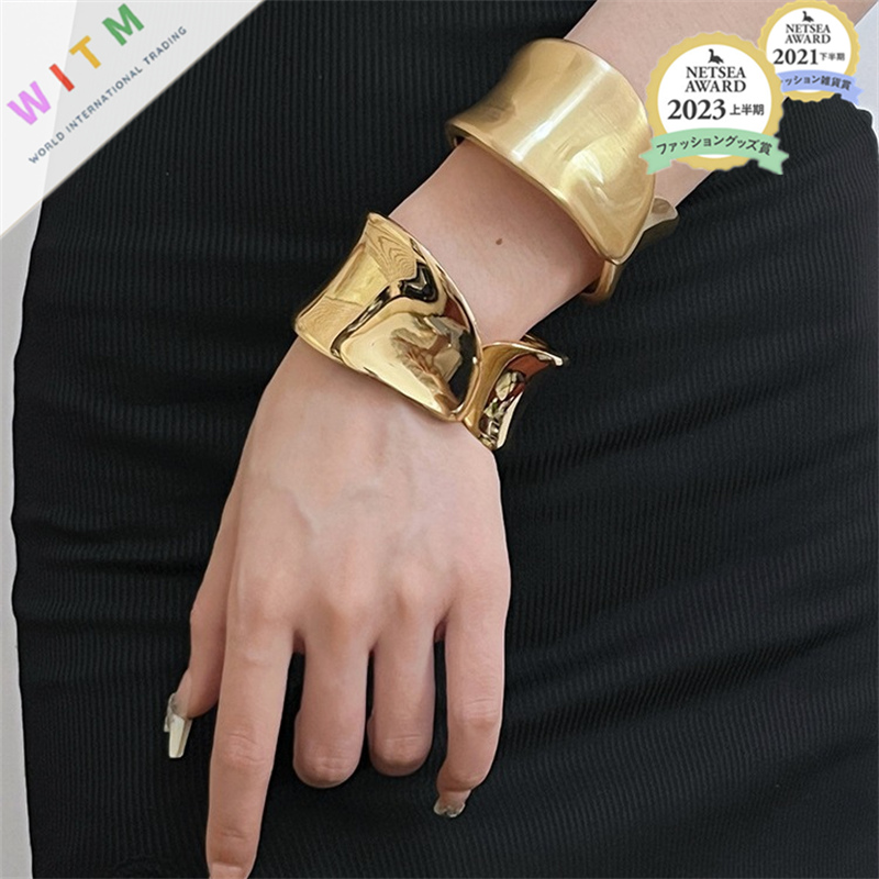 大人かわいい雰囲気に仕上げたゴールドブレスレットレディース。 幅広デザインで個性的な印象を与える上品な仕上がりです。 デイリー使いからちょっとしたプレゼントにも最適な逸品です。