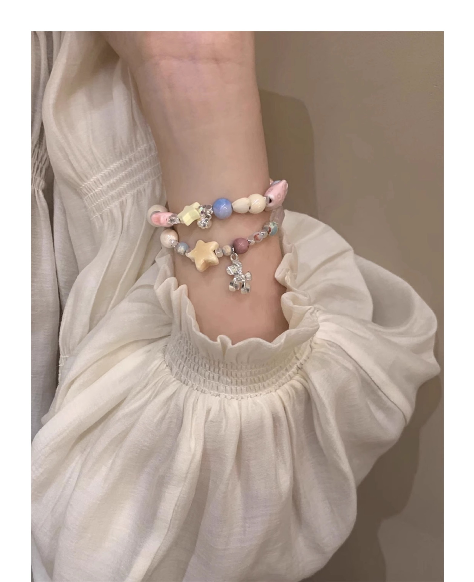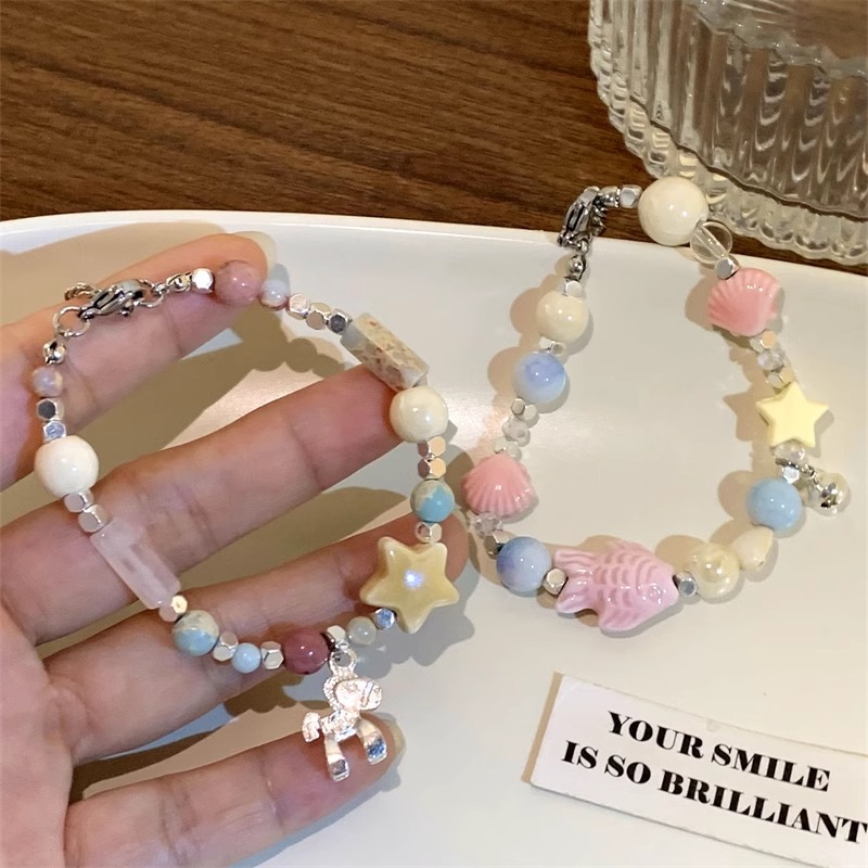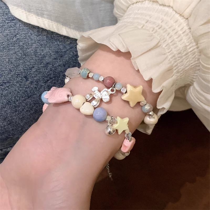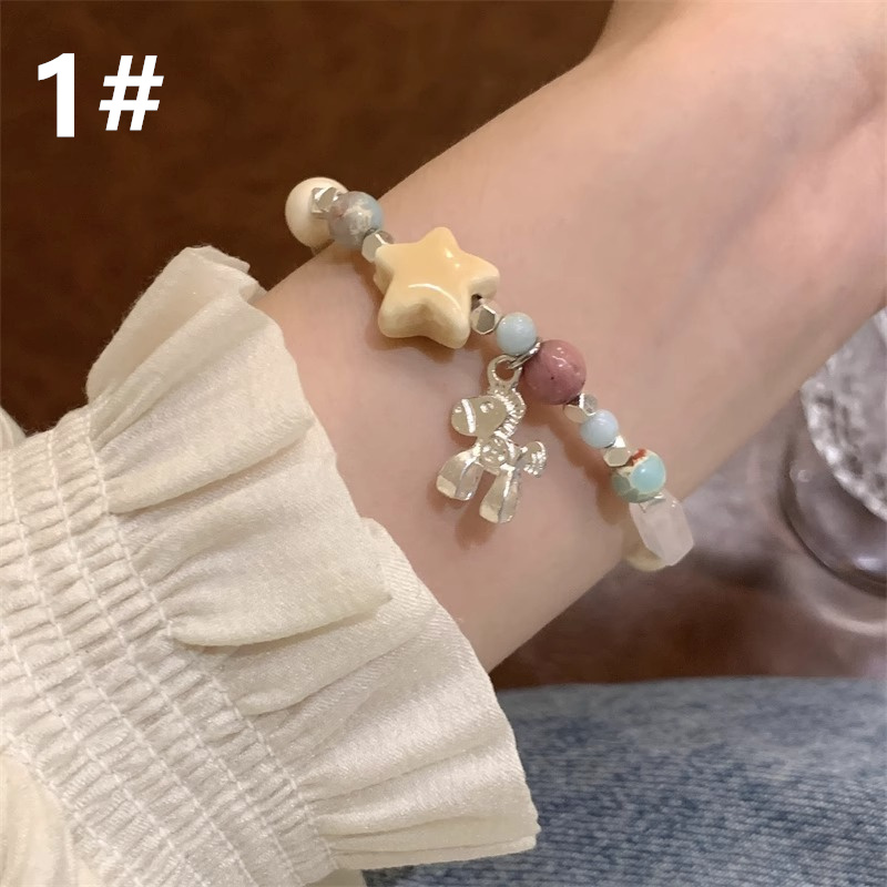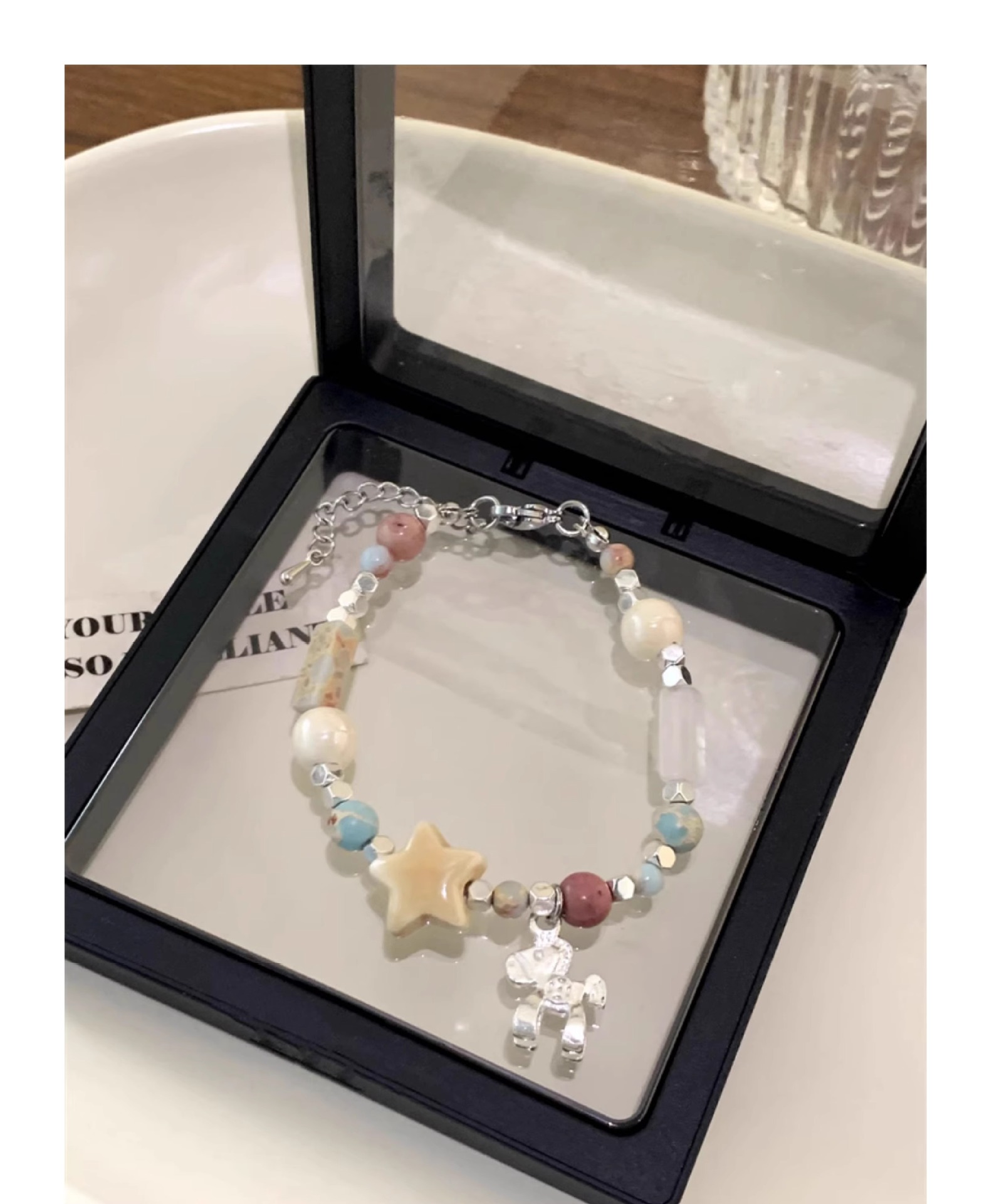 星型チャームと天然石を組み合わせたシルバーの上品なデザインで、毎日使えるおしゃれな仕上がりに。
