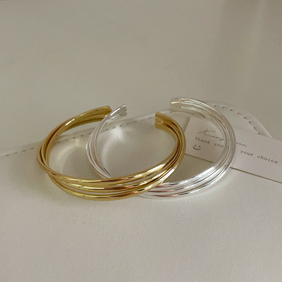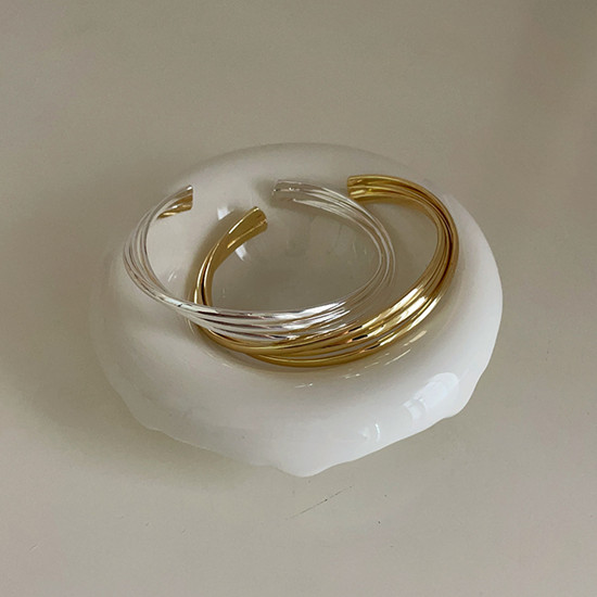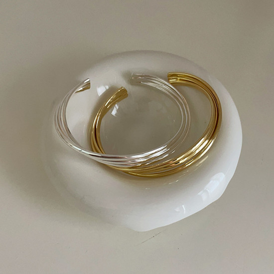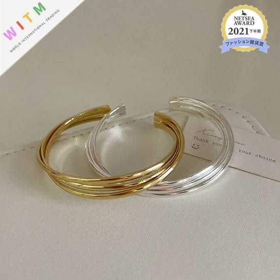 大人かわいい雰囲気に仕上げたゴールドブレスレットレディース☆ 重ね付けしたような立体的な設計感で上品な印象に。 デイリーに使えるシンプルなデザインで、 ちょっとしたプレゼントにも最適です。