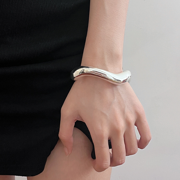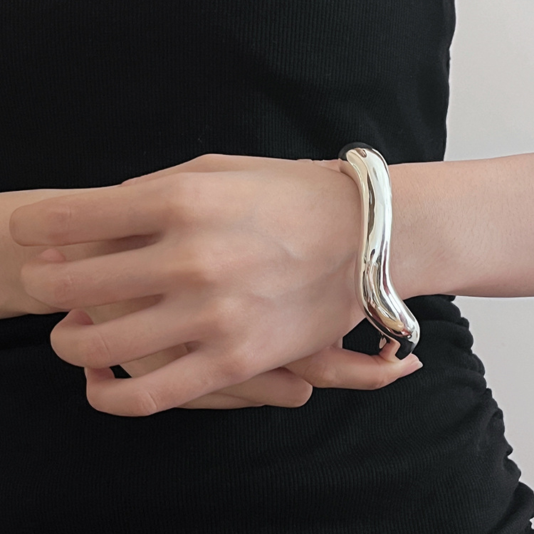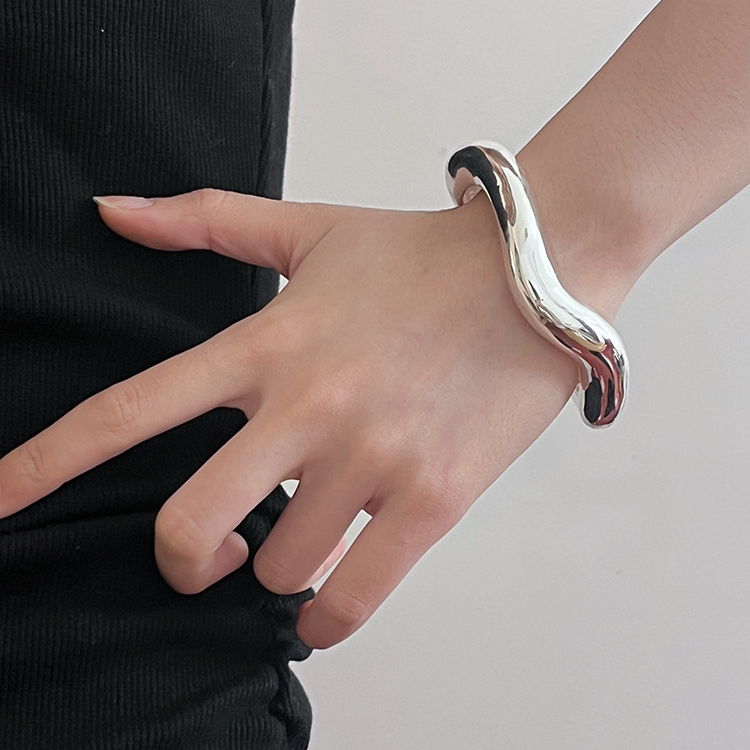 大人かわいい雰囲気に仕上げたシルバーブレスレット。