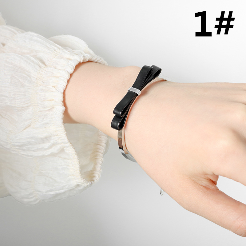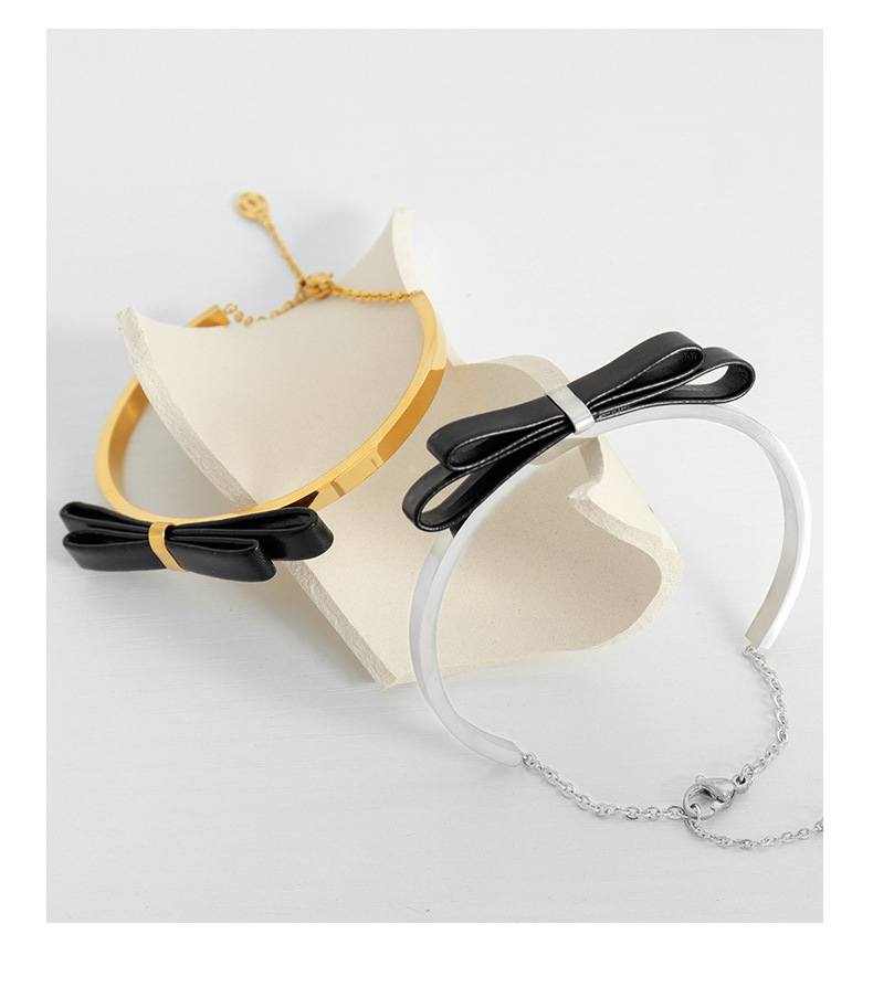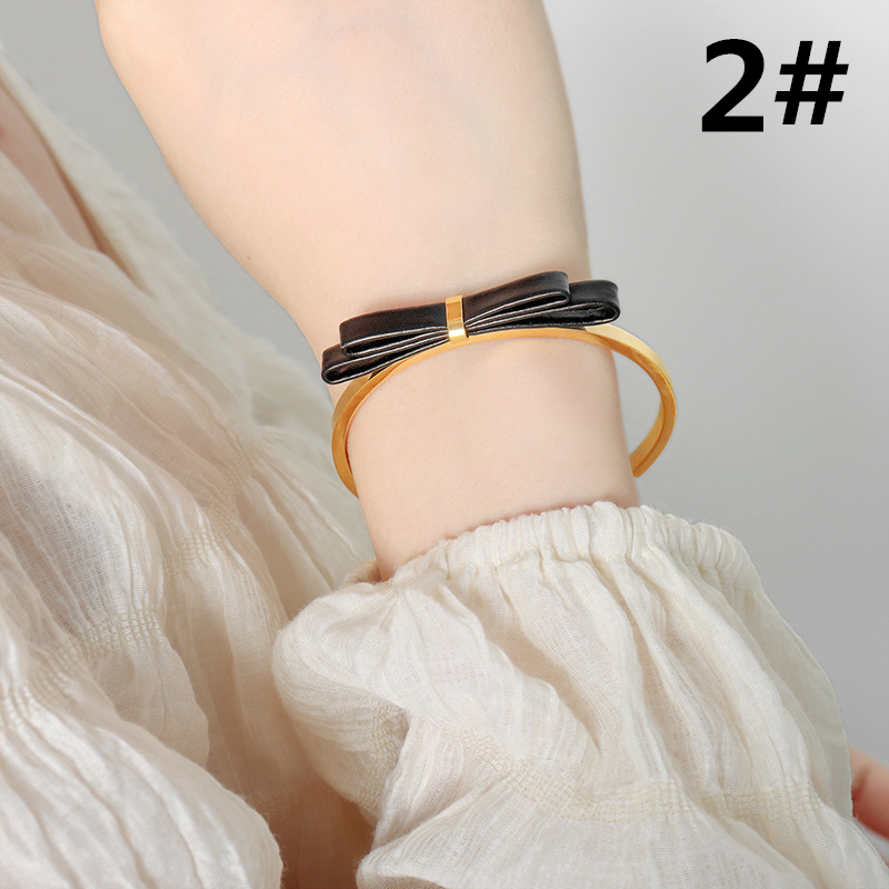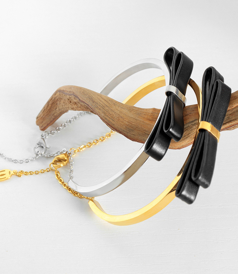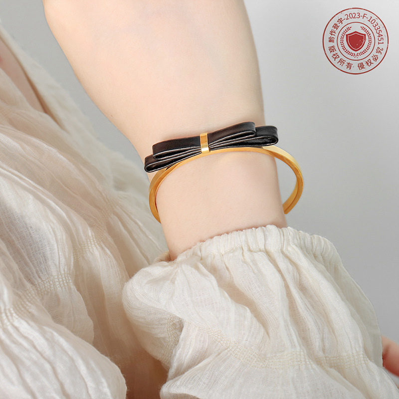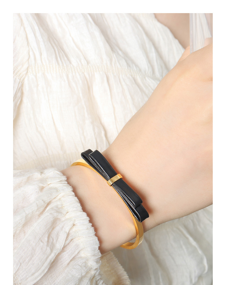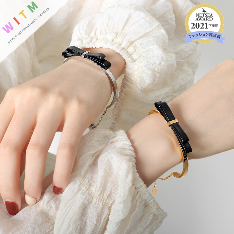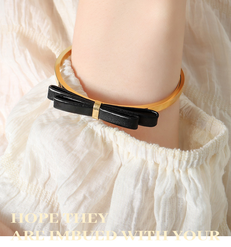 大人可愛い雰囲気に仕上げた本革リボンのゴールドブレスレット☆