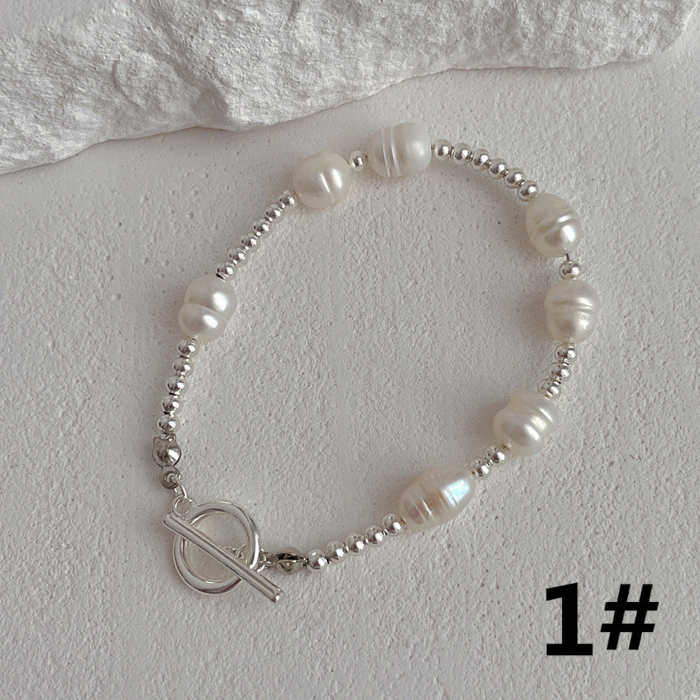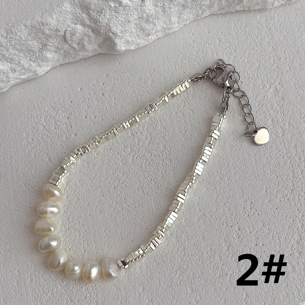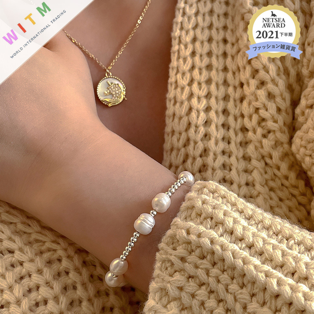 大人可愛い雰囲気に仕上げた真珠とシルバービーズの上品なブレスレットレディース。