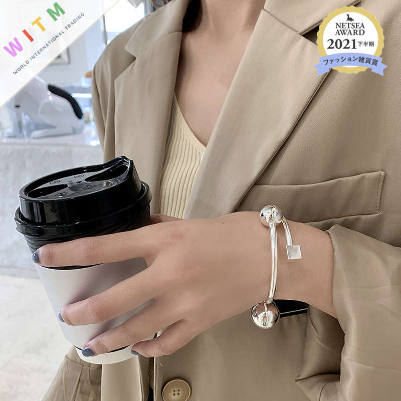 立体的な球モチーフが洗練された雰囲気を演出し、さりげなく手元を華やかに彩ります。