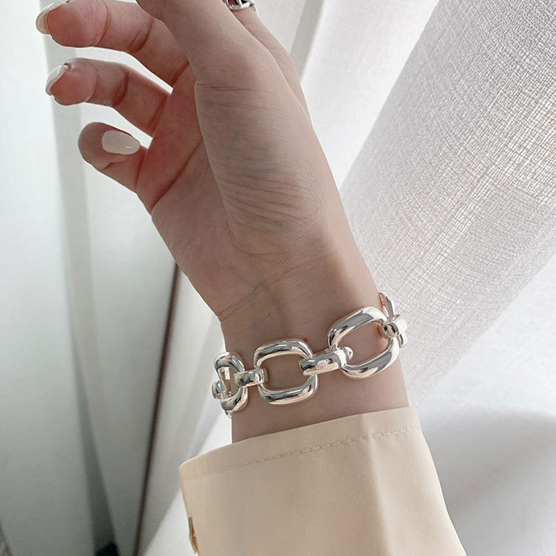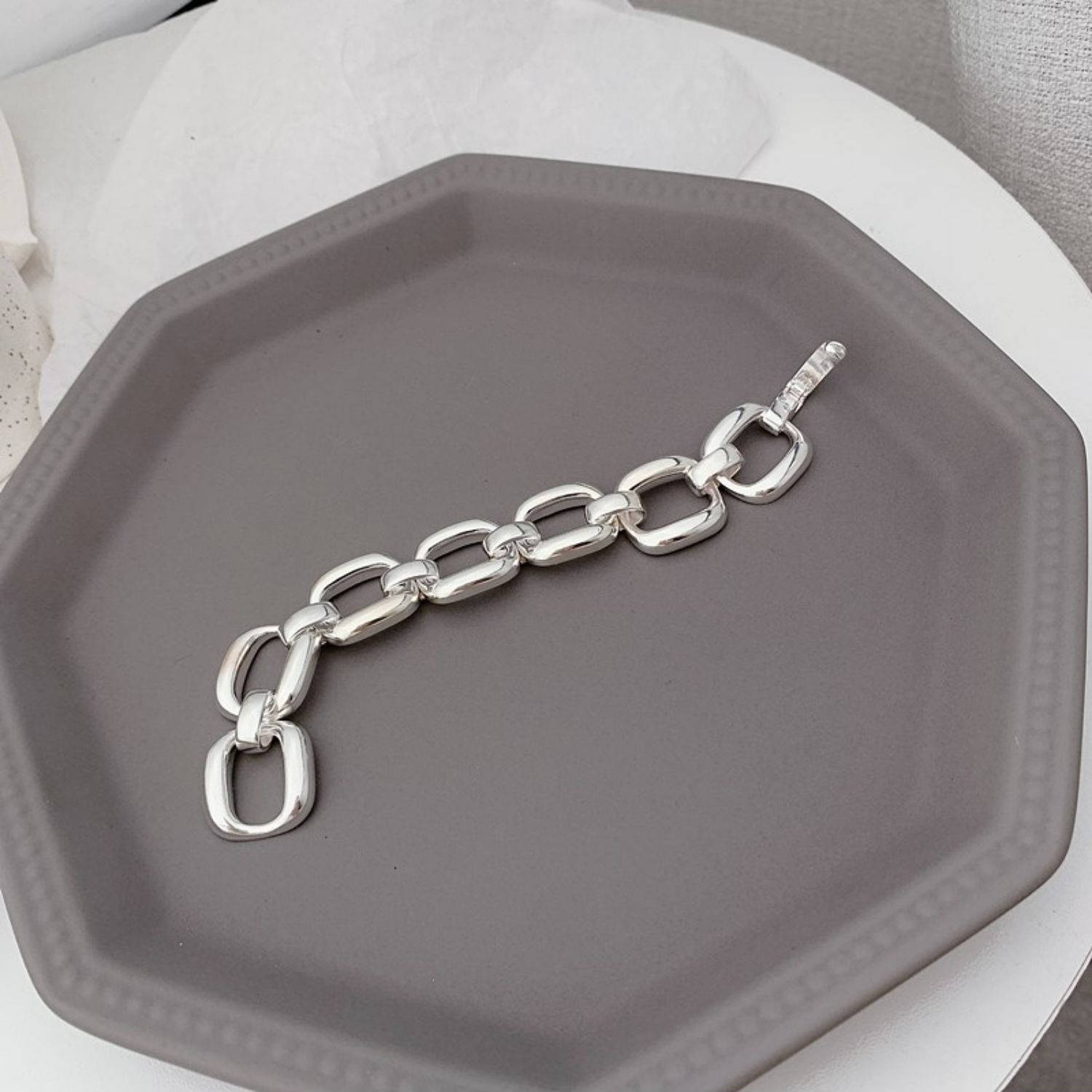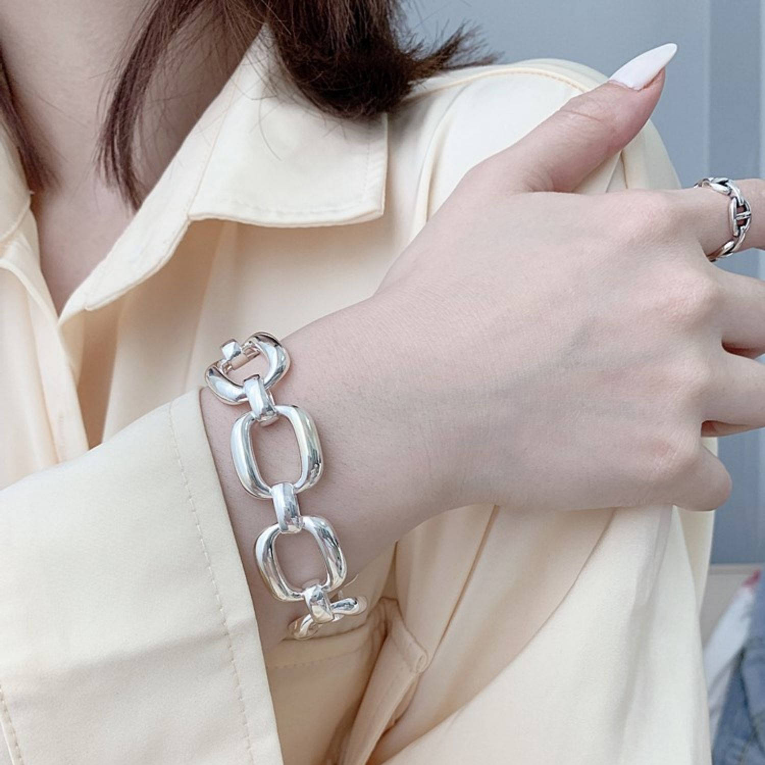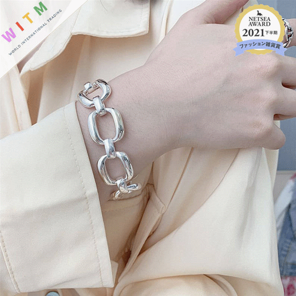 大ぶりなオーバル型チェーンが手元を華やかに演出し、