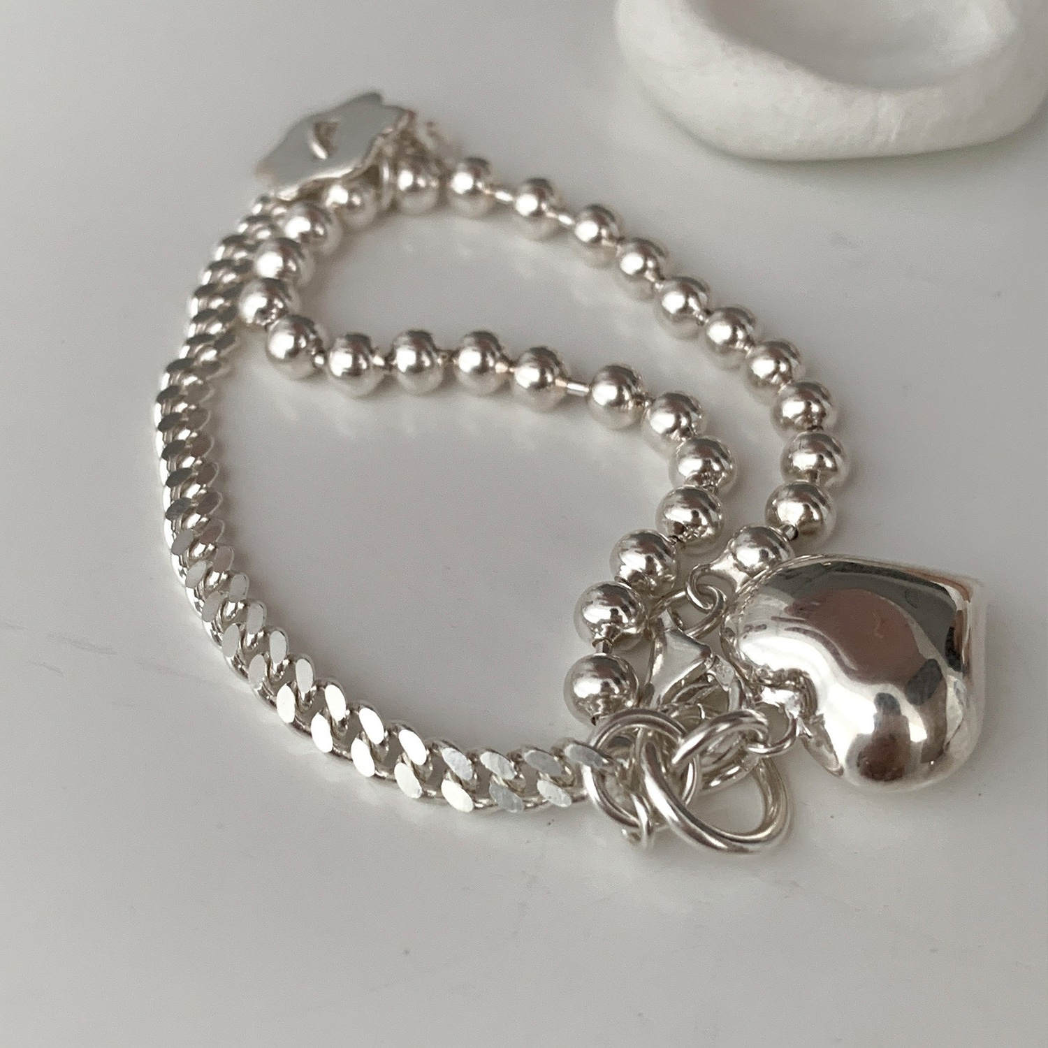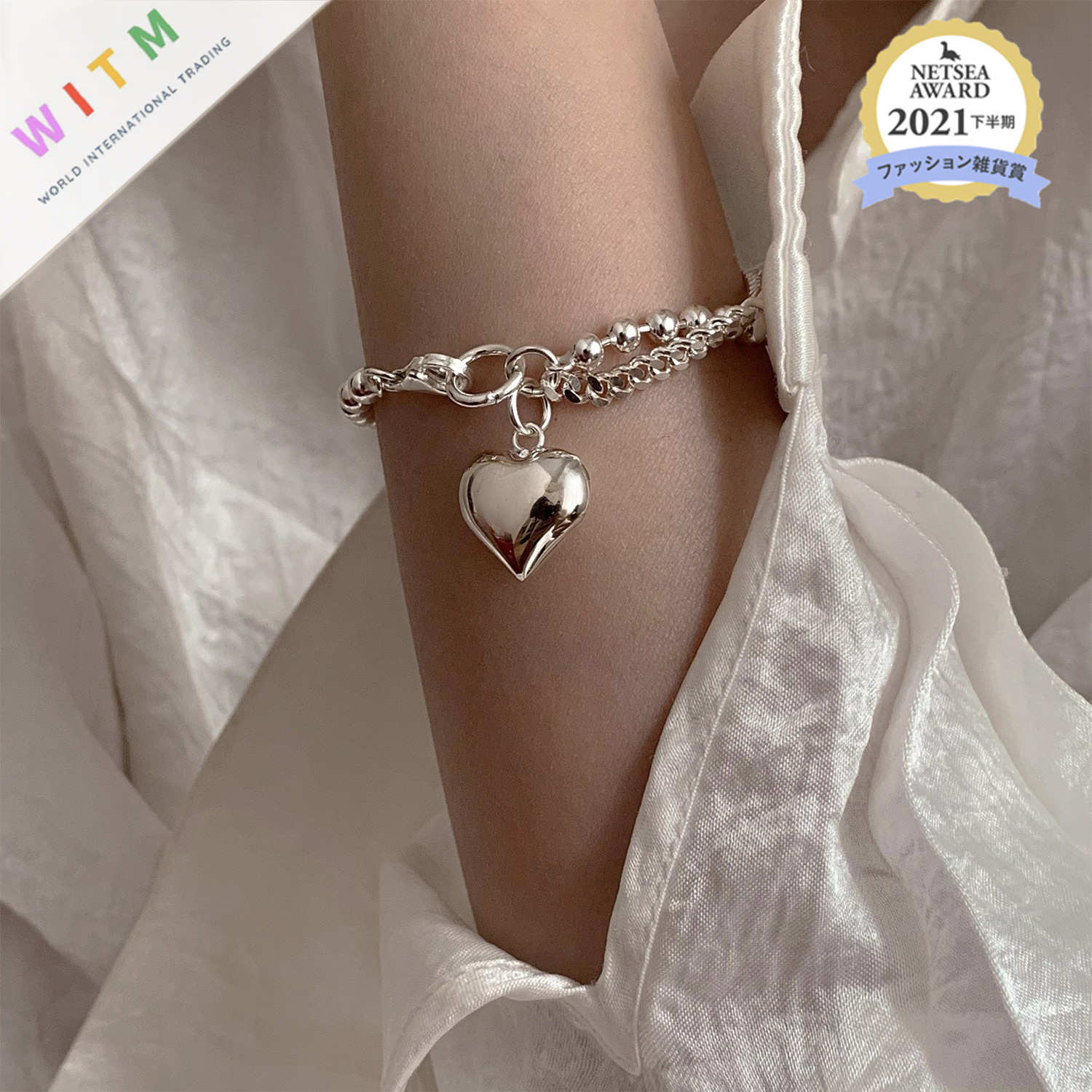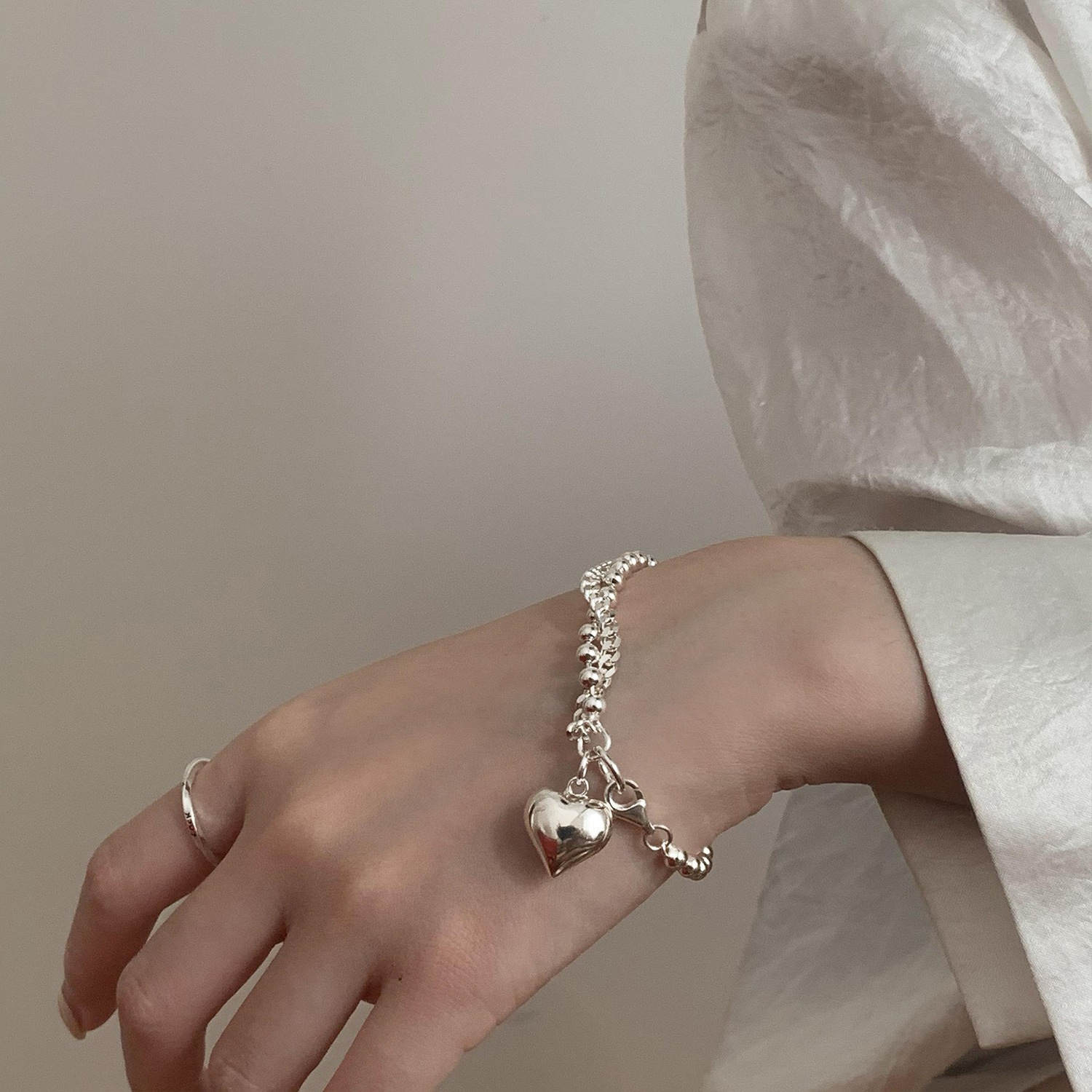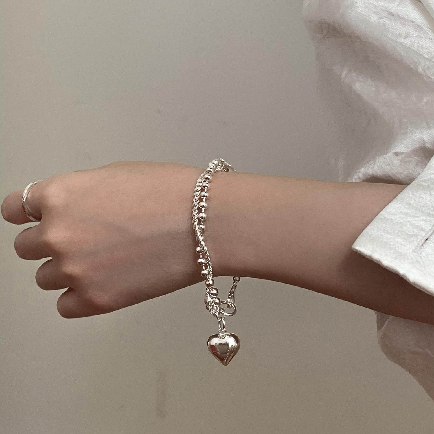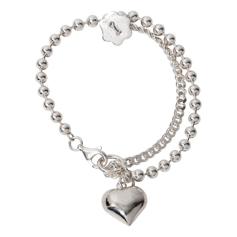 大人かわいい雰囲気のシルバーハートチャーム付きブレスレットレディース。