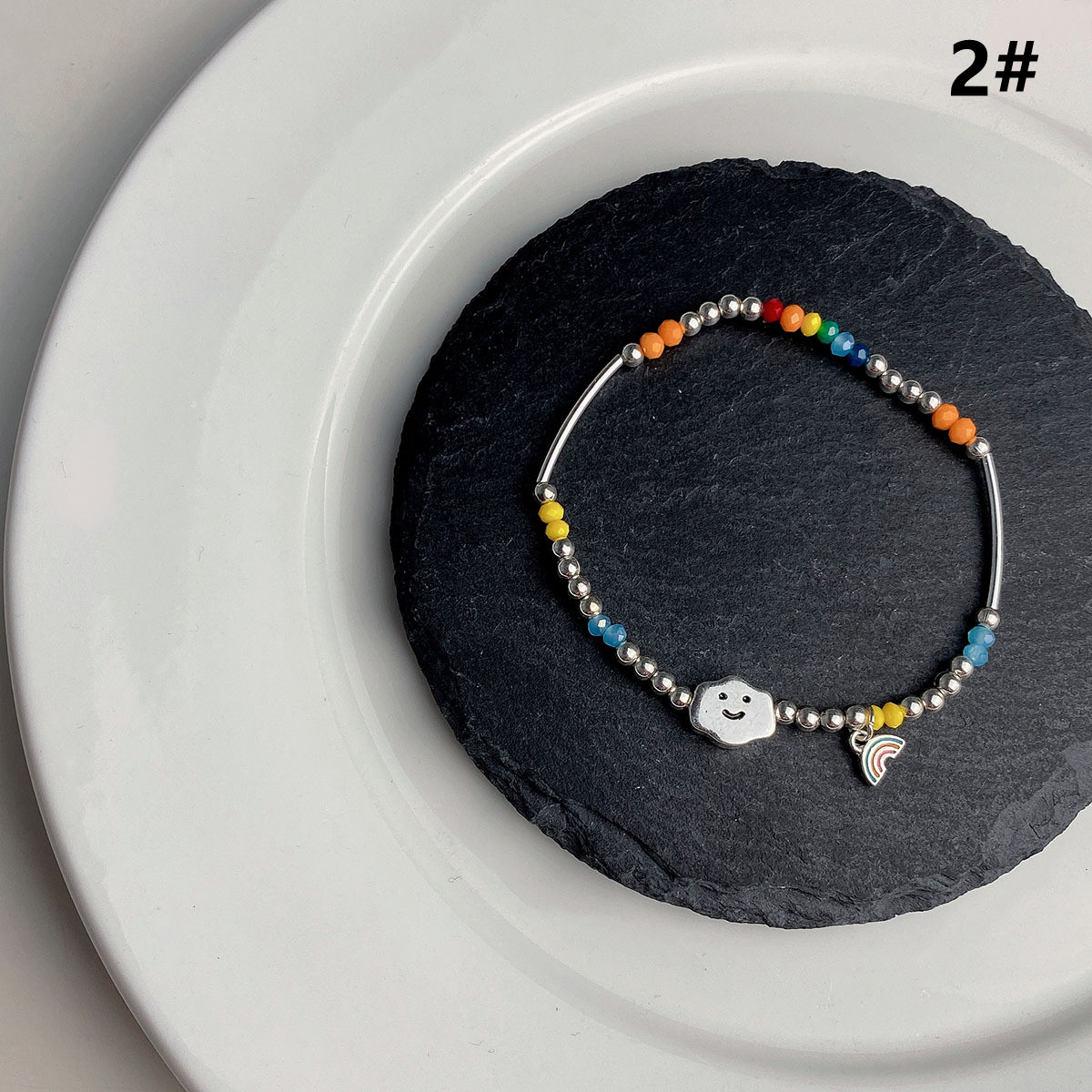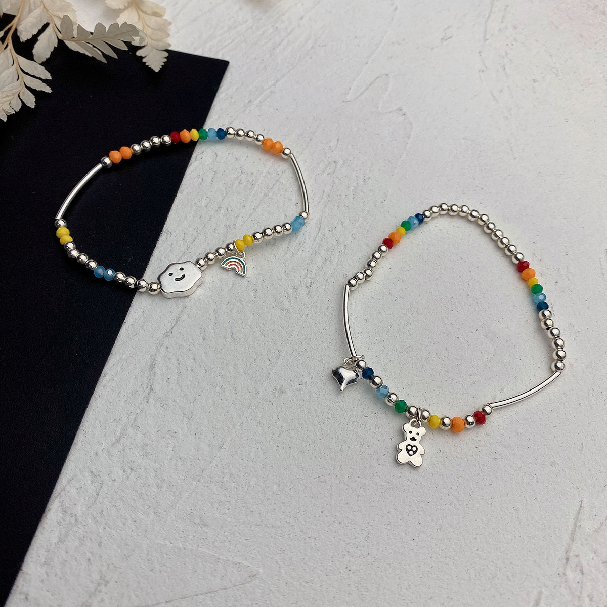 シルバーのビーズとカラフルな天然石を組み合わせた、