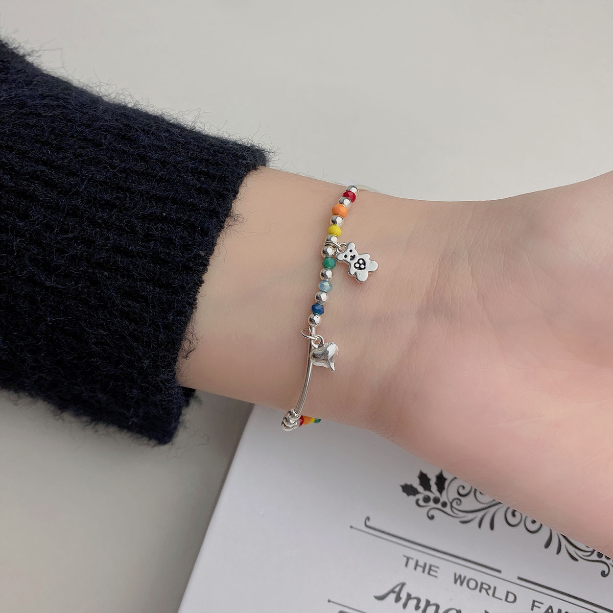 くまのチャームがポイントで、伸縮性があり着けやすく、