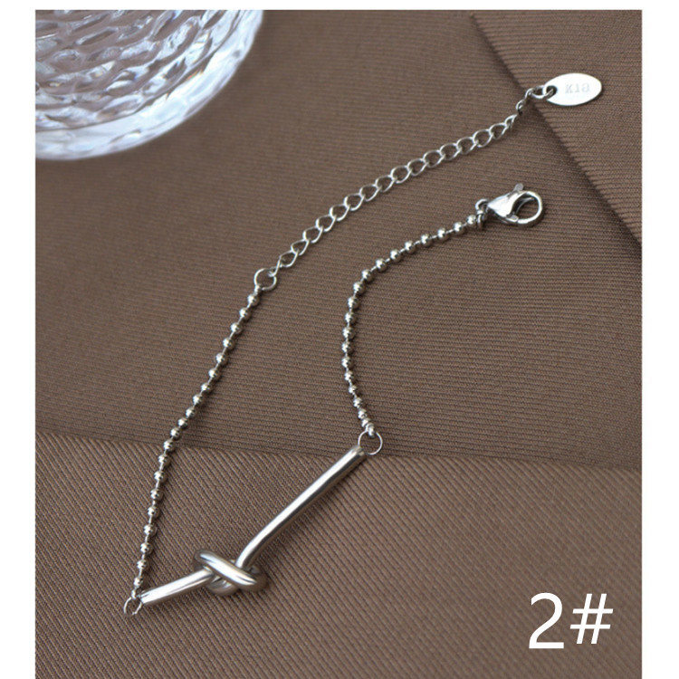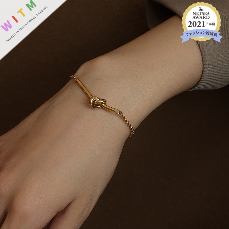 チタン鋼素材に金色加工を施し、結び目のデザインがポイント。