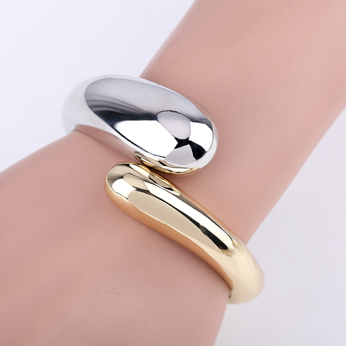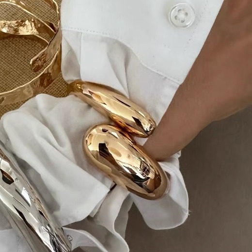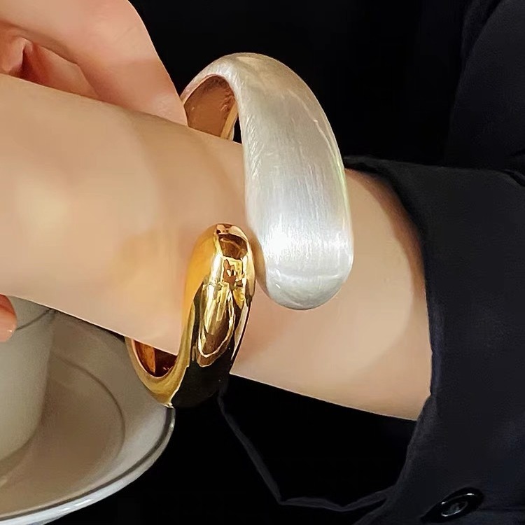上品な光沢が美しいゴールドとシルバーの二重デザインブレスレット。