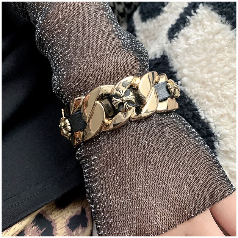 エレガントなゴールド仕上げが魅力的なチェーンブレスレットです。