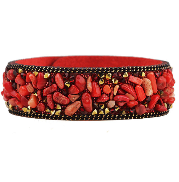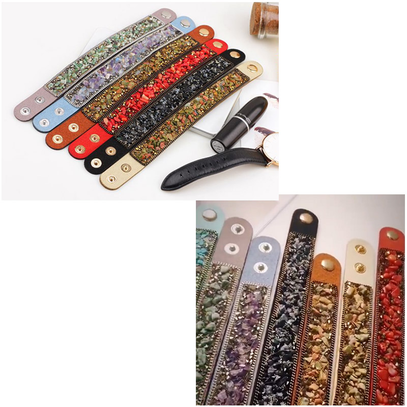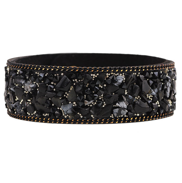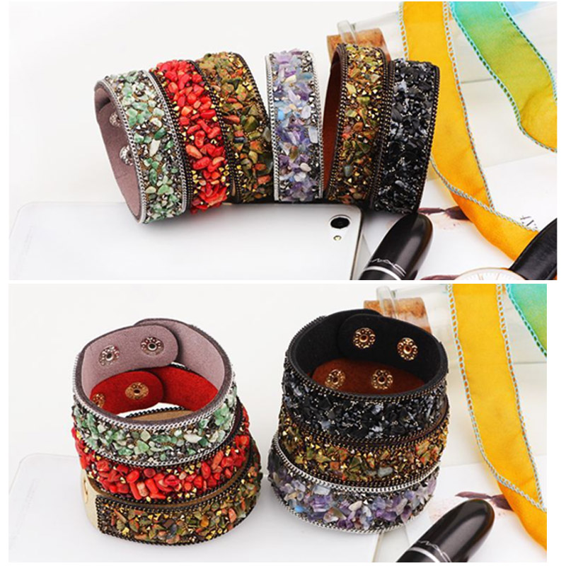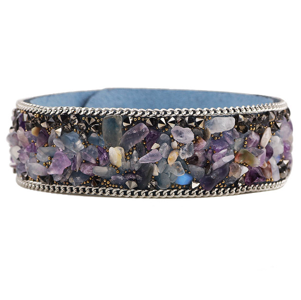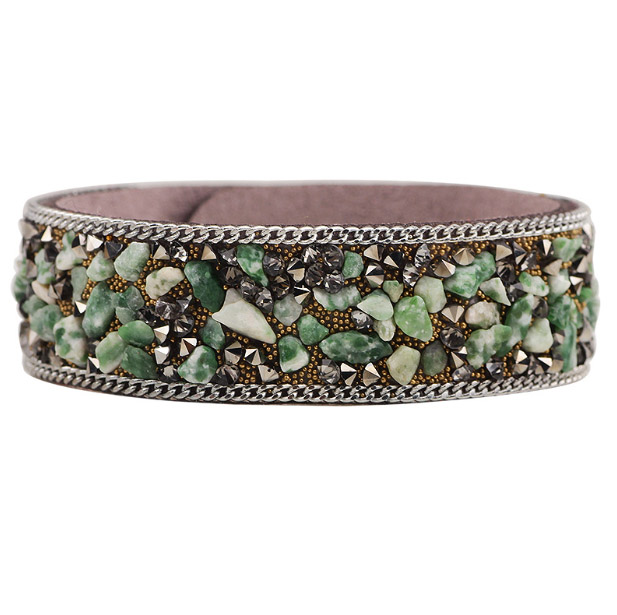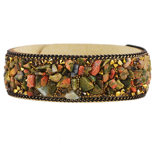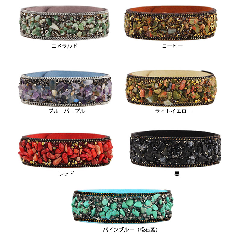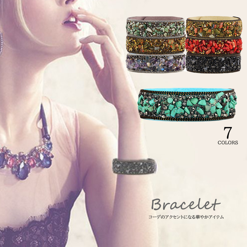 華やかな天然石風のデザインが美しい幅広バングルです。