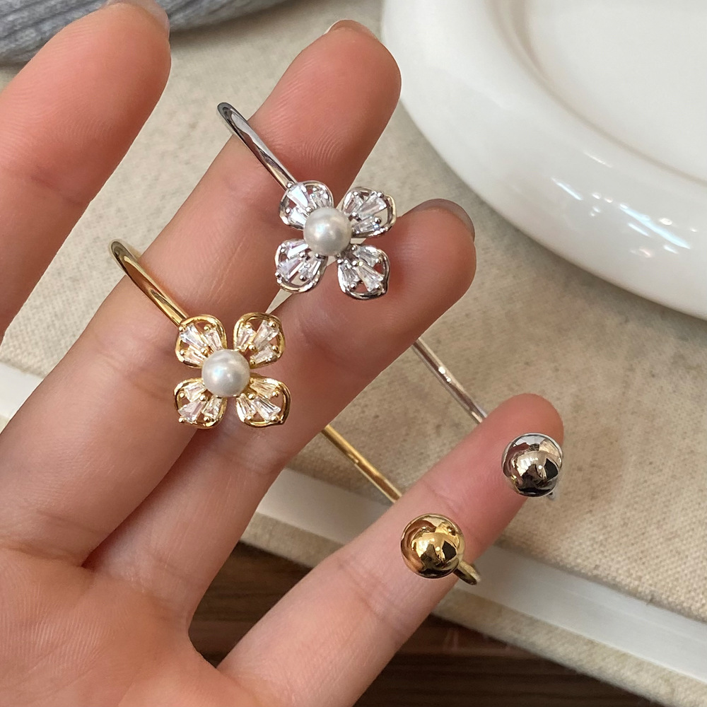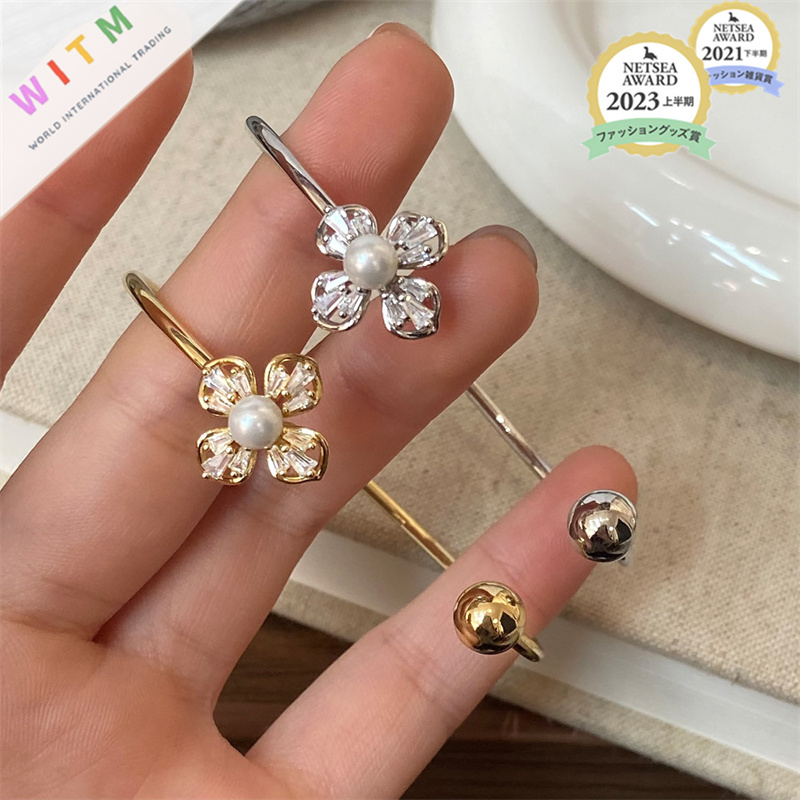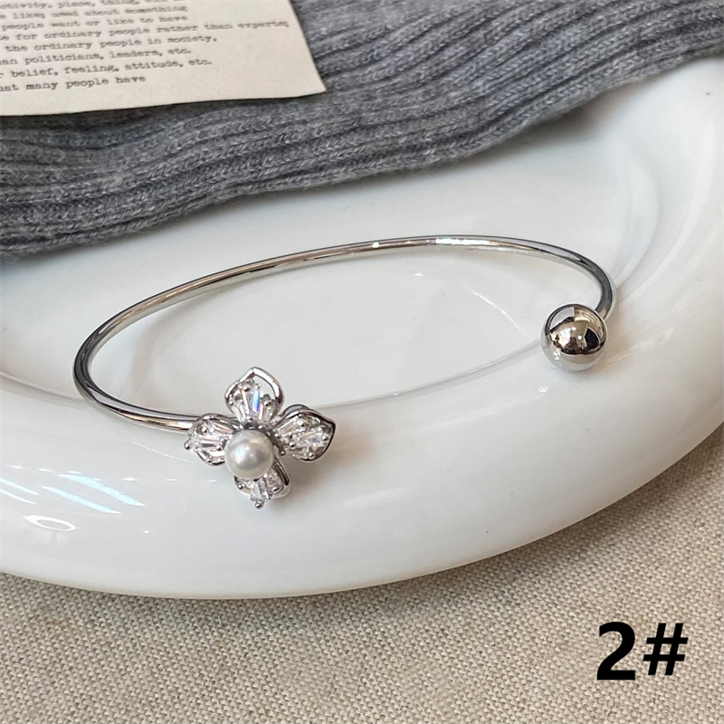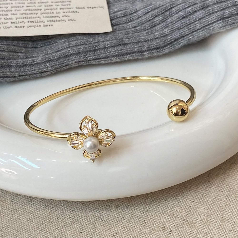 大人かわいい花モチーフのパールバングルで上品な雰囲気に。