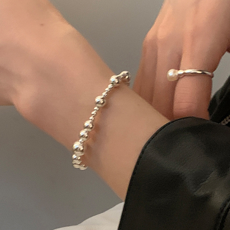 大人可愛い雰囲気に仕上げたシルバーボールバングルです。 毎日使えるシンプルなデザインで上品なブレスレットレディースアイテム。 ちょっとしたプレゼントにも最適な高級感のある腕輪です。
